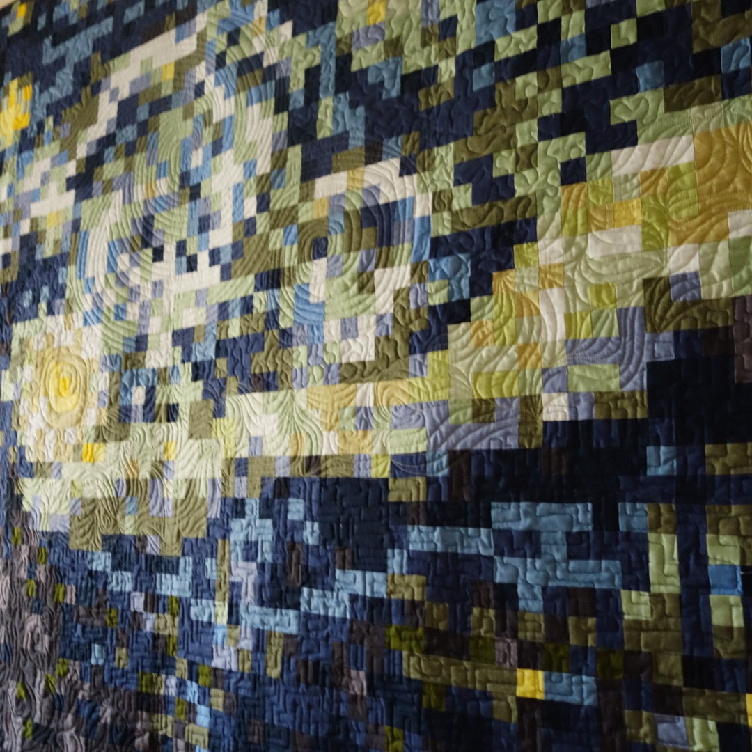 و أخيراََ ، و بعد عدة أشهر من إنتهائي من لحاف ليلة النجوم و المستلهم من لوحة فان كوخ الشهيرة، إشتريت علاقات و علقت اللحاف في مجلس الضيوف.